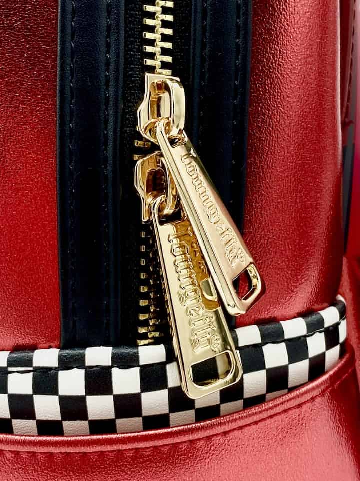 Win the Piston Cup with this Loungefly Lightning McQueen Mini Backpack! Sizzling in a metallic red this Disney Pixar Cars bag features a fantastic combination of appliques as well as embroidery to recreate a truly realistic design of the speedy character. The back features artwork of the iconic Rust-eze bumper ointment sponsor, meanwhile the cosplay piece is finally complete with the classic double zip fastenings and signature enamel logo.